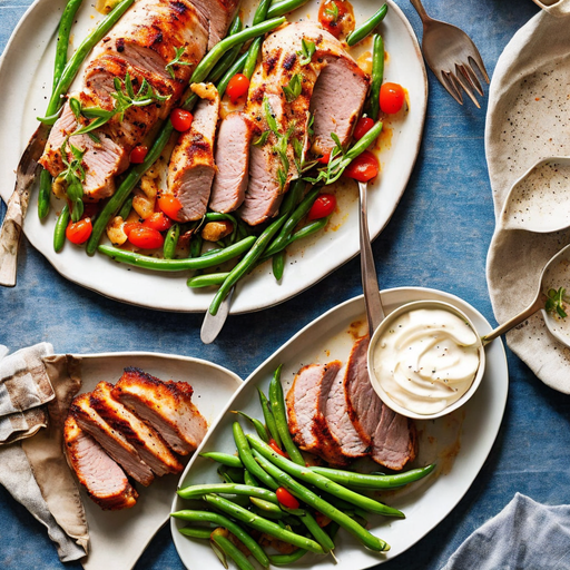 Um prato delicioso e cremoso de lombo de porco com feijão verde, perfeito para uma refeição reconfortante.