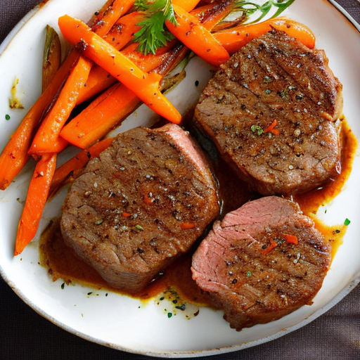 Uma deliciosa receita de suculentos bifes de filé mignon com cenouras.