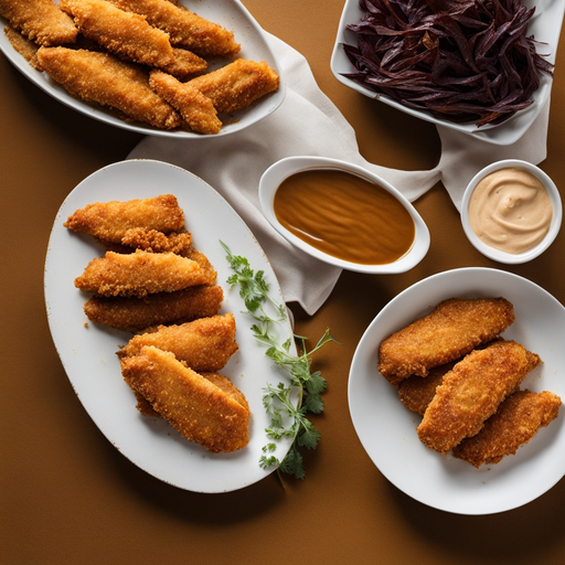 Deliciosas e crocantes tiras de frango com um toque de manteiga de amendoim. Perfeito para um lanche rápido e satisfatório!