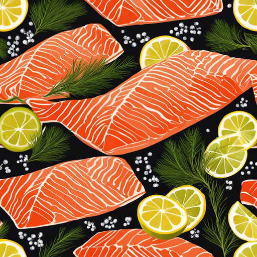3. Regue o salmão com azeite e tempere com sal, pimenta, suco de limão e endro fresco.