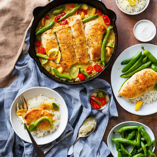 Um delicioso assado cremoso de frango e arroz com um toque de acidez de pimentas banana e suco de limão.