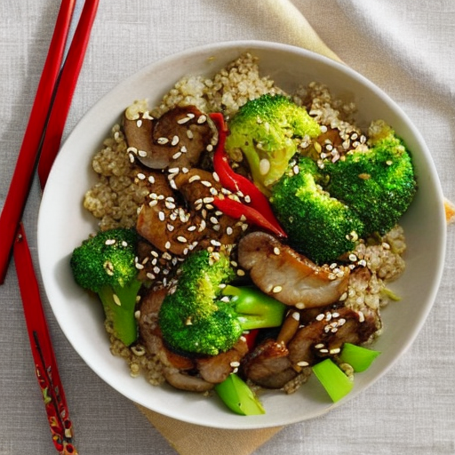 Um delicioso e saudável refogado de porco com quinoa e legumes.