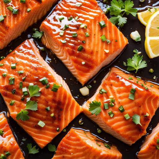 Salmão delicioso e saboroso com um glacê doce e salgado de mel e alho.