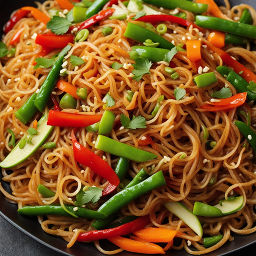 5. 5. Misture os legumes e o macarrão juntos, em seguida, adicione molho de soja, óleo de gergelim e outros temperos desejados.