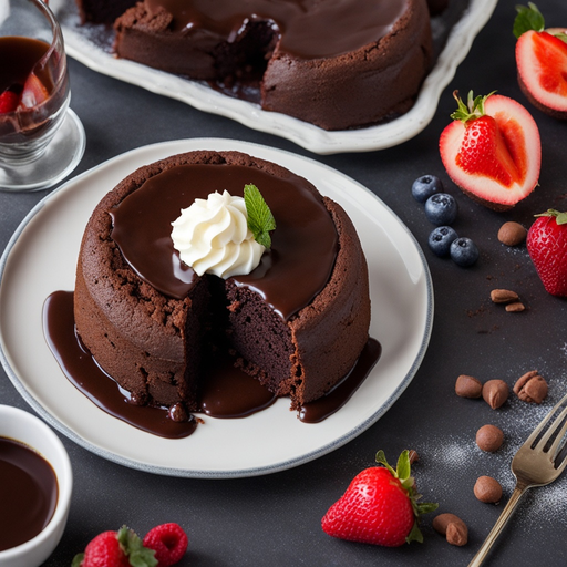 Delicie-se com um bolo de chocolate rico e decadente com um centro cremoso que derrete na boca. Esta sobremesa é perfeita para qualquer amante de chocolate.