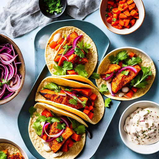 Uma reviravolta saborosa e picante nos tradicionais tacos de peixe, com batata doce para um sabor único!