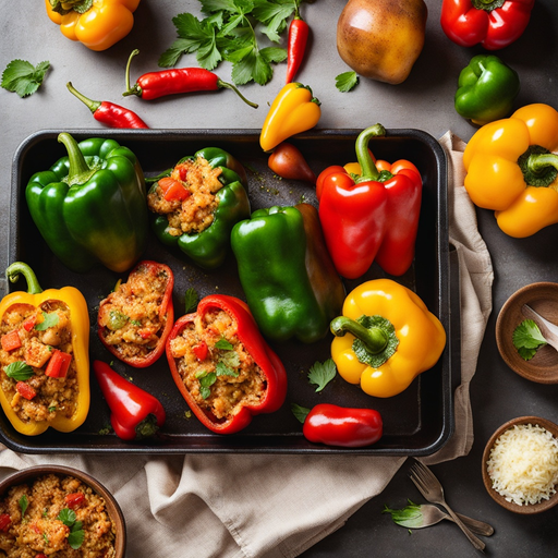 Um prato delicioso e satisfatório de pimentões recheados com uma mistura saborosa de arroz e batatas